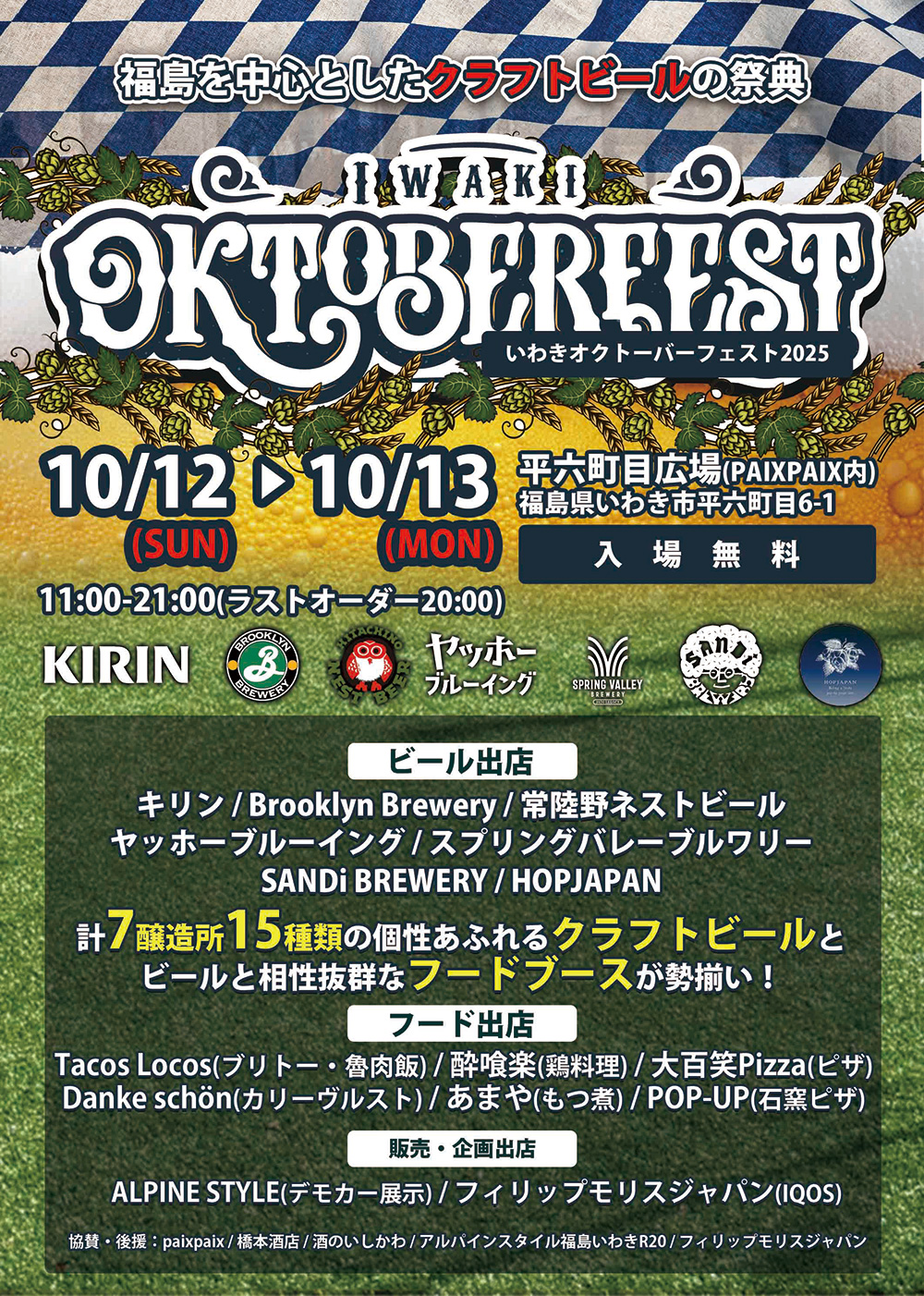 ビールの祭典「いわきオクトーバーフェスト2025」を開催致します。