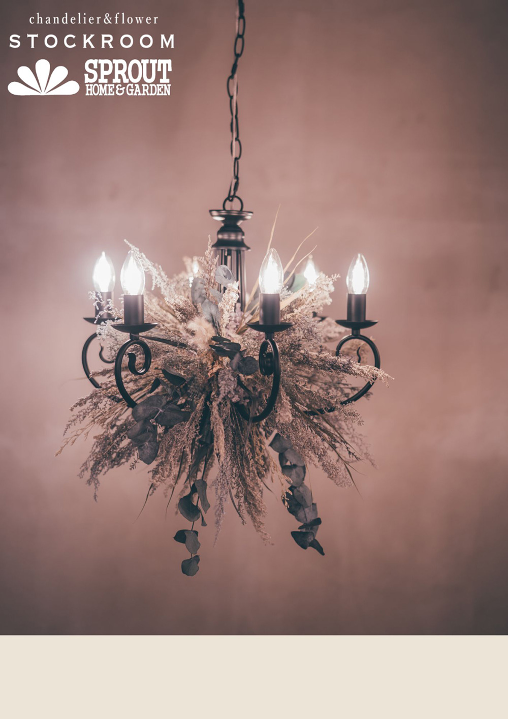 “福島県初上陸ストックルームフラワーシャンデリア”