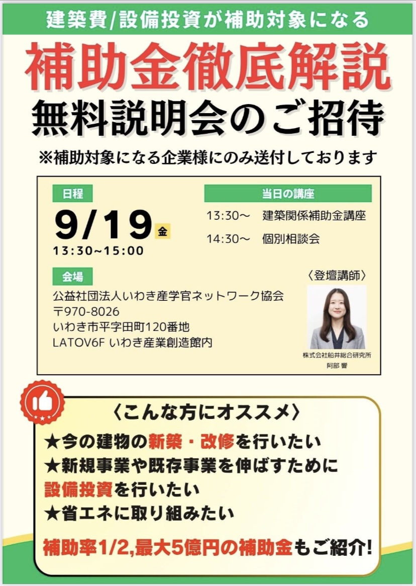 この度事務所・店舗建築に活用できる補助金セミナーを開催することが決定いたしました!