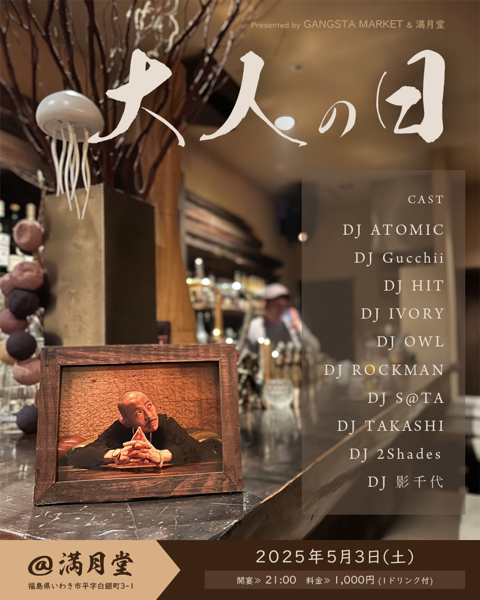いわきのサブカルシーンを担ってきた大人達が贈る大人の為のヒップホップイベント「大人の日」がGWに開催。