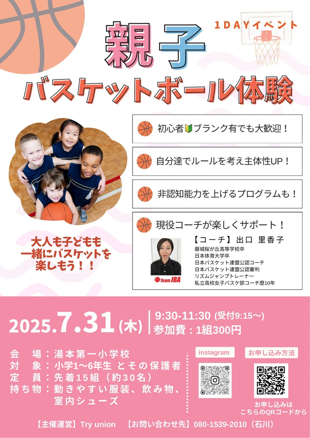 夏休みはゲームもいいけど、仕事もいいけど、親子でバスケット一緒にやりませんか?