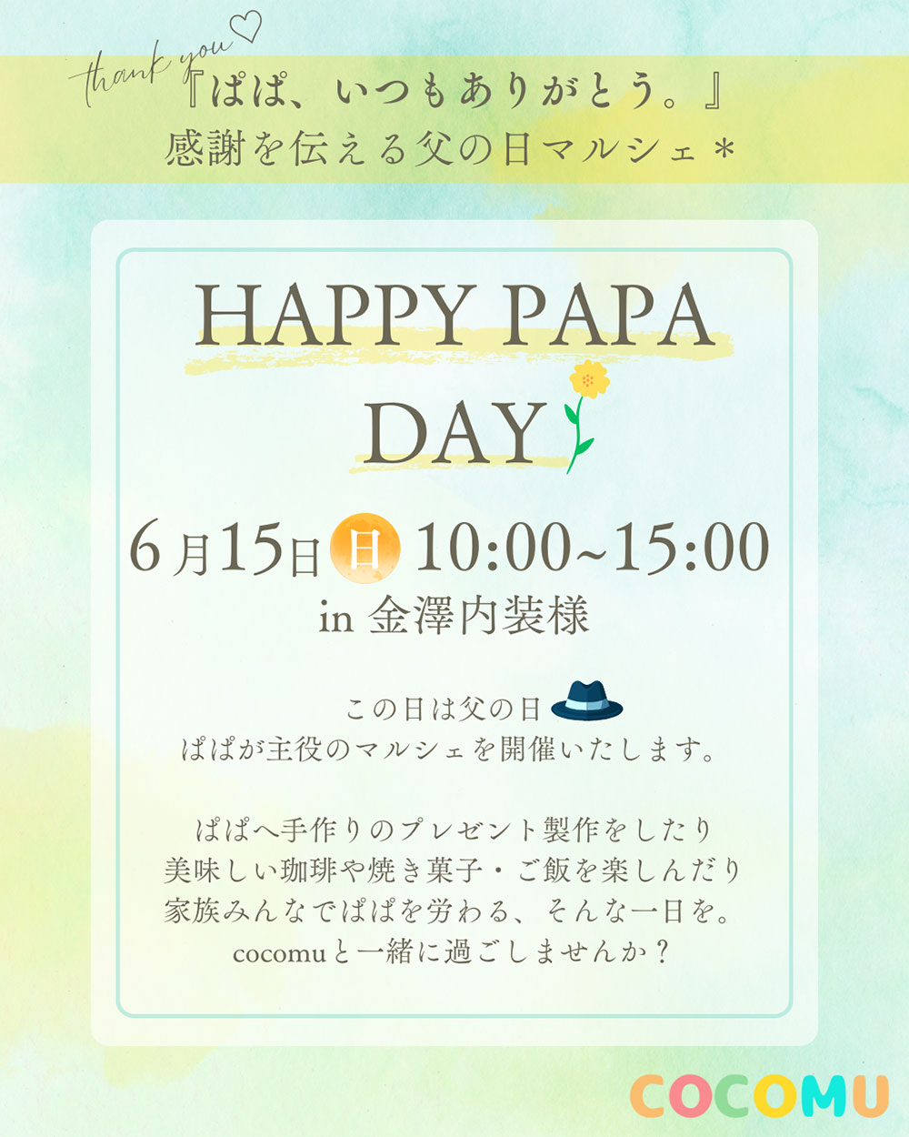 父の日に合わせて「パパ」が主役のミニマルシェです◎