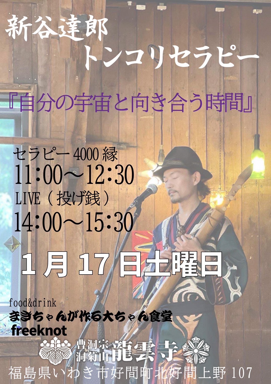 【福島初!】極上の癒やし体験 トンコリセラピーのご案内 こんにちは! 今日は、心と体を癒やす特別な1日のご案内です🌿 北海道から「トンコリ」という伝統楽器の奏者・新谷達郎さんが、好間の龍雲寺に来てくれます! \こんな方に […]