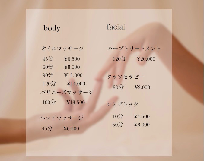 | 営業時間 | 10:00〜18:00(最終受付) |